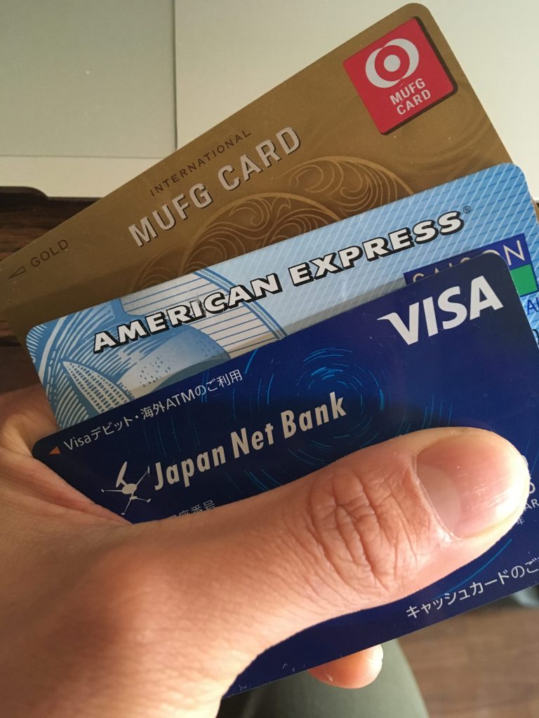 僕はMUFG系列のクレジットカード(VISA)、セゾンアメックス、ジャパンネット銀行の国際キャッシュカード(VISA)